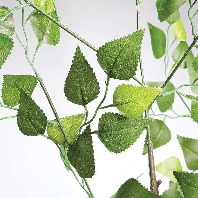 Very realistic decorative tree with fabric leaves with many details and different shades of green, flexible branches made of plastic and wiped white trunk with a wooden look, comes with a metal base plate 25 x 25 cm, price per piece