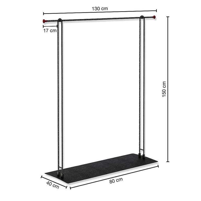 LOFT is a fresh and airy furnishing system with various accessories to make your shop individual and varied. The reinforcing steel system responds to the  interest in the industrial look in the furnishing and furniture sector and can be combined very well with wood or glass. The characteristics of this material will give your shop a new, unique and exclusive style! Very sturdy and stable textile stand made of 12 mm mild steel, equipped with 17 cm long suspension arms with red end and metal stand plate. Easy self-assembly.