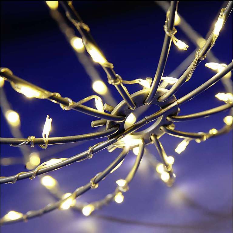 A modern classic for an impressive lighting in your Christmas decoration. The combination of wire and light makes this light ball stand out in any setting. The ball can be folded flat and has a silver varnish and made of 3 mm wire strands with integrated micro LED wire rope light. Clear PVC cable, power supply with contour plug, GS. Suitable for outdoor use. Please note: A power adapter is required for use in Switzerland. You can find it in our product portfolio under article number 432.160.00. Price per piece.