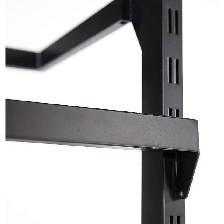 The elements of our NOVUS series can be easily combined which makes it easy to create a modern and functional interior design. An elegant middle room solution is provided by our multifunctional hanging system with shelf; you can store many articles with a small footprint: 2x hangers, height-adjustable in 10 levels for a side presentation and 2 variable arms can be added for a frontal presentation and can be used to hang different items without looking overloaded. The 25 cm wide perforated metal shelf provides space to exhibit matching shoes or handbags. An additional bottom plate to protect the clothes from dirt. The metal construction is made of a 20 mm square-cut frame and comes with a high-quality powder-coating, which makes the clothes stand more durable and sturdy. Please note the need for DIY assembly. Price per piece.