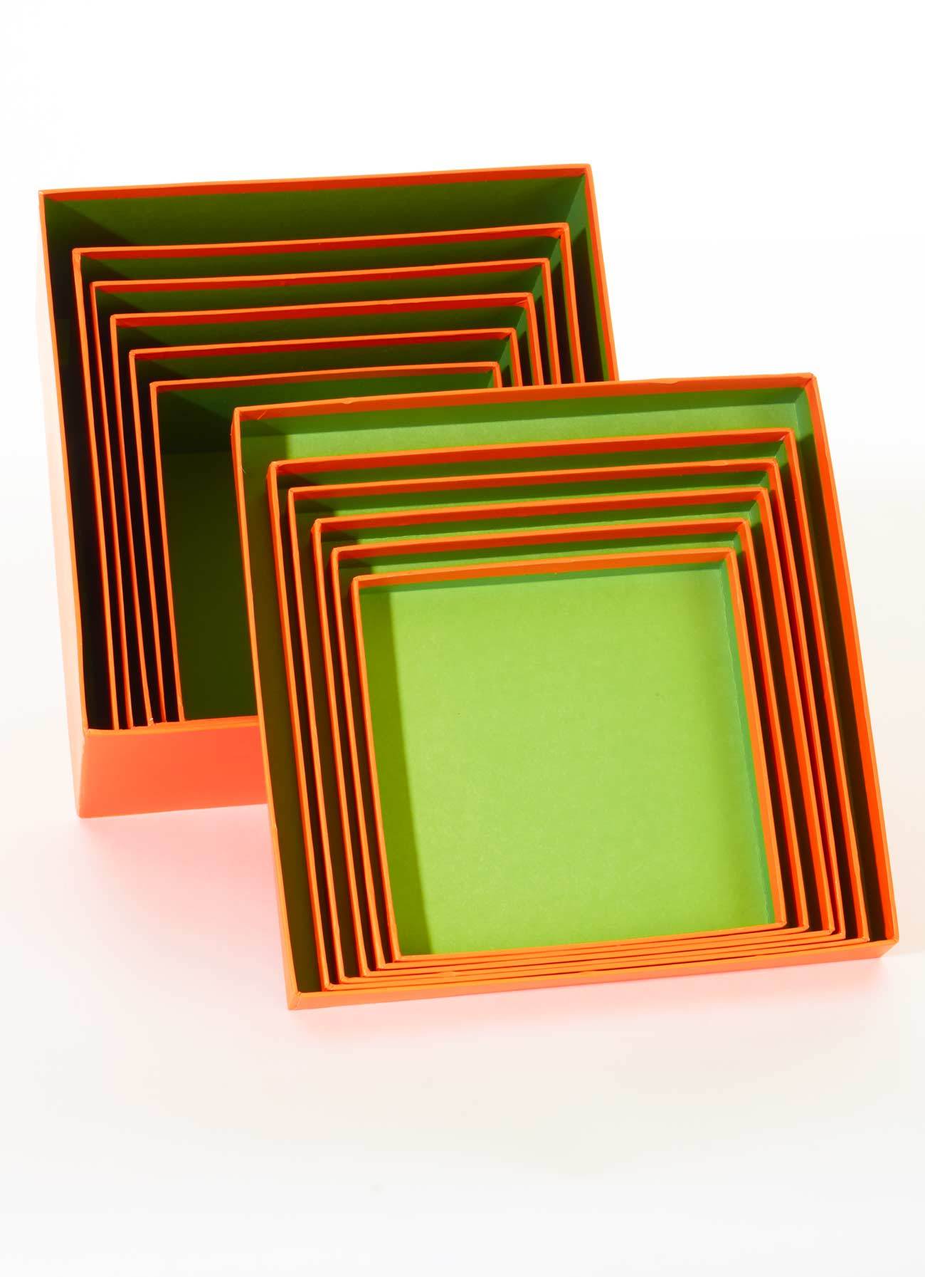 Giftbox set, cardboard, set with 6 pieces. square: 15.5x15.5x9.5, 17x17x10.5, 18.5x18.5x11.5, 20x20x12.5, 21.5x21.5x13.5 and 24x24x14.5 cm