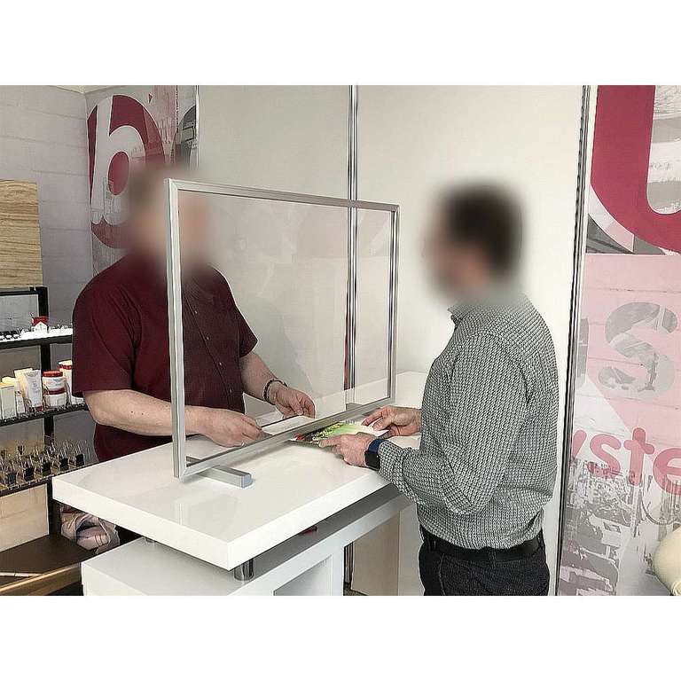 Protection against infection at the workplace or at the POS so that you can additionally protect your employees and your customers in corona times. A sensible and inexpensive product that offers optimal protection against virus and droplet infection and can be placed on almost any counter or counter as well as checkout areas. It can be set up quickly and easily, without fixation, for example in pharmacies, doctor's offices, petrol stations or at checkouts in drugstores and grocery stores. Easy cleaning of the material is also guaranteed. Transparent plastic pane with feet. Please note: Our offer is valid while stocks last.