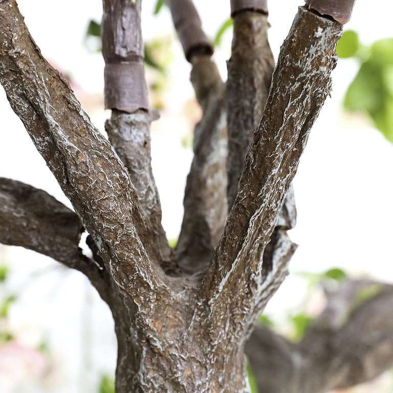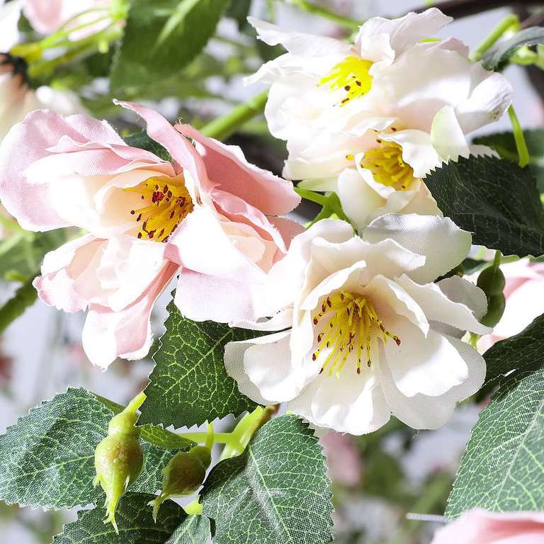 This imposing blossom tree is an impressive eye-catcher and is suitable as a carefree decoration for wellness and business areas as well as in shop windows. The intensive colourfulness of the full textile blossoms as well as the hanging branches provide a romantic spring decoration. The artificial tree with a trunk height of approx. 50 cm consists of a plastic trunk in wood look on which the tree crown is mounted. The branches are delivered separately and are simply clipped on, so they keep their shape during transport. To ensure stability, the tree is attached to the ground by means of the firmly mounted metal stand plate (25 x 25 cm).