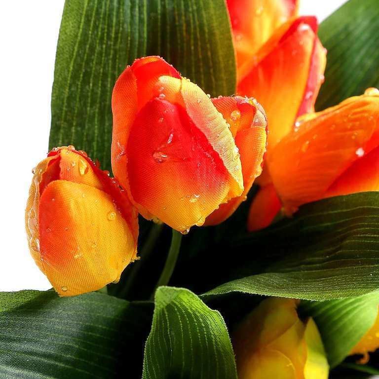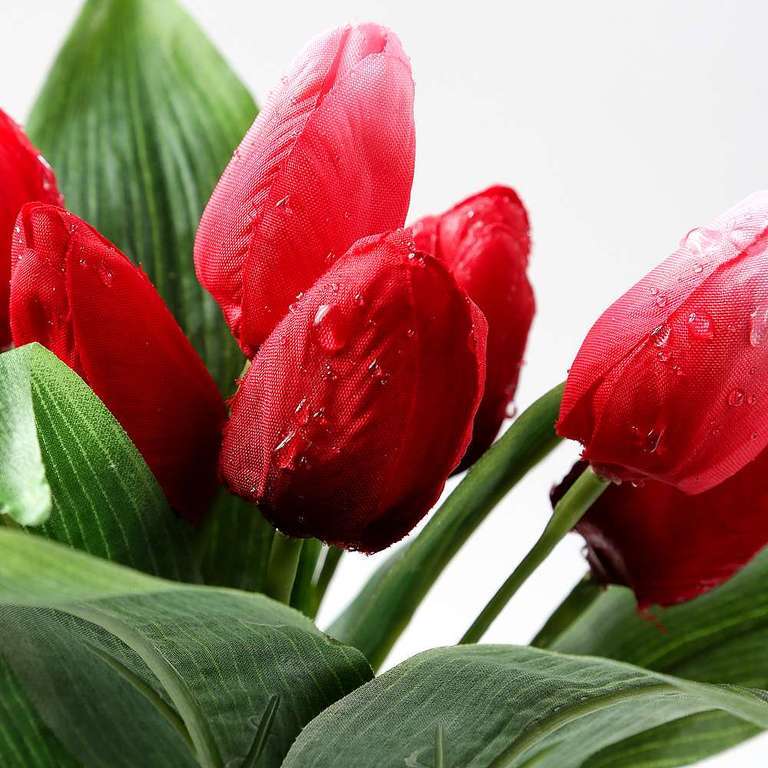 This artificial bouquet set stands out thanks to its details, beautiful shapes and bright colours. This assortment of tulip bouquets is ideally suited for a table decoration or as an accessory for your fresh spring decorations. You will receive 12 bouquets each with 3 tulips in the same colour made of high-quality fabric material. Price per pack.