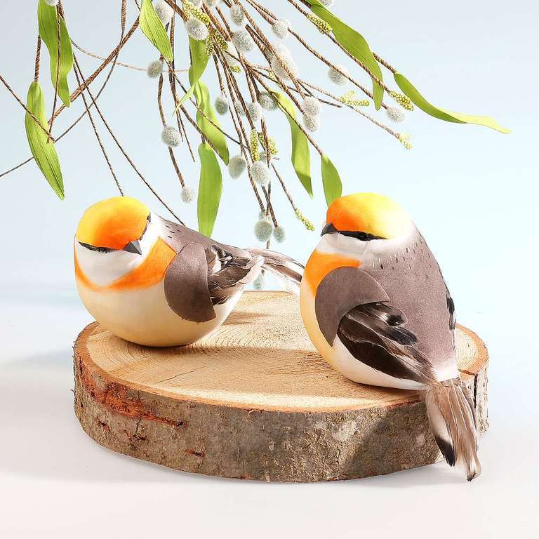 Decorative birds are ideal for spring decorations as well as for handcrafting and decorations. Painted hard foam body with real feathers and perlon hanger. Price per piece.