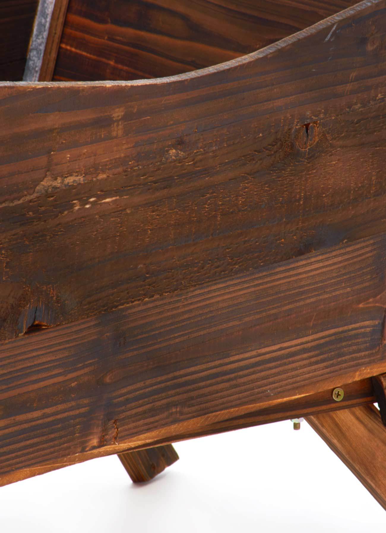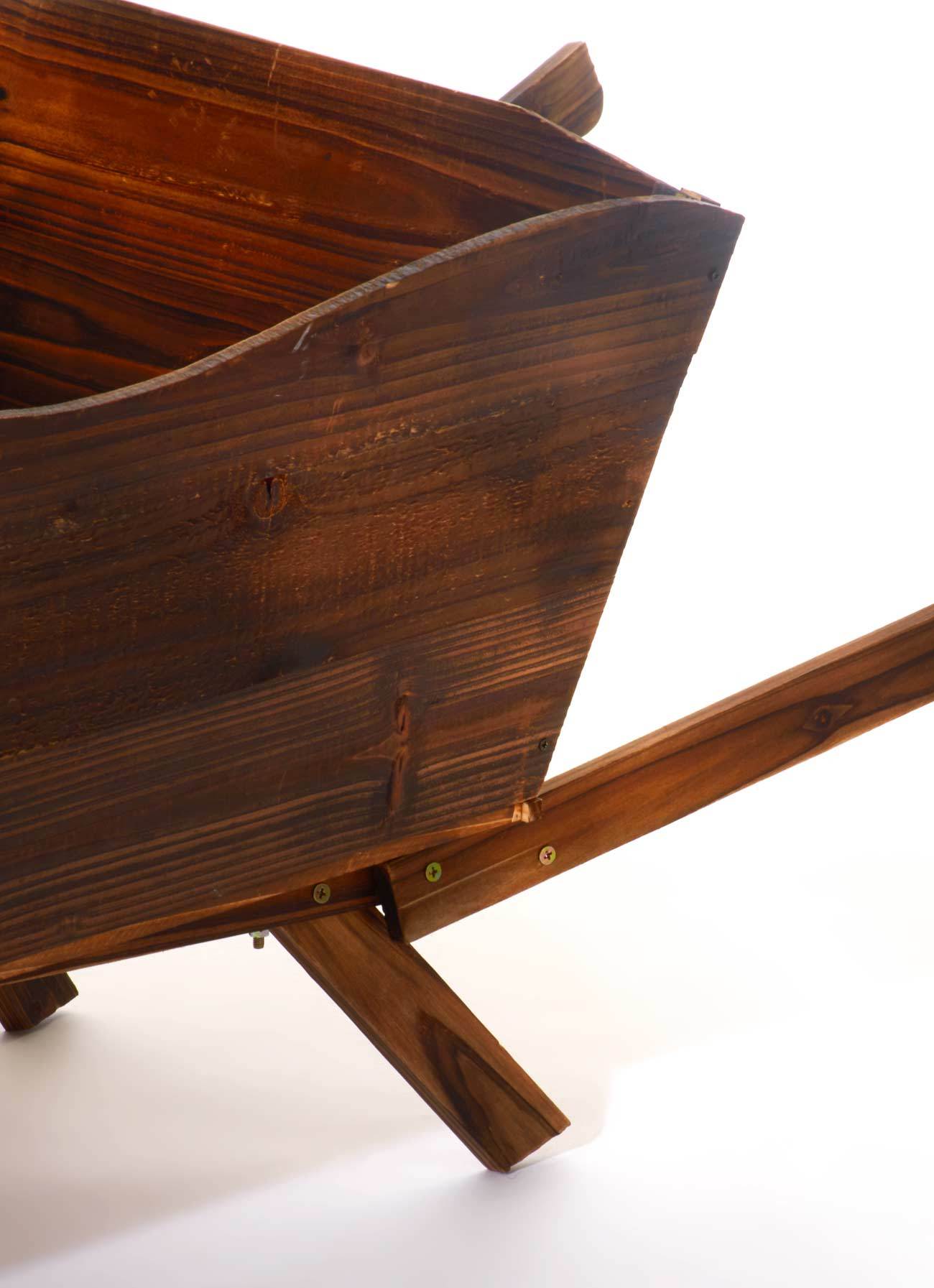 Wheelbarrow, wood, 140x45x45 cm (L/W/H). Container 65x45x27 (L/W/H), only suitable for decoration purpose for lightweight items.