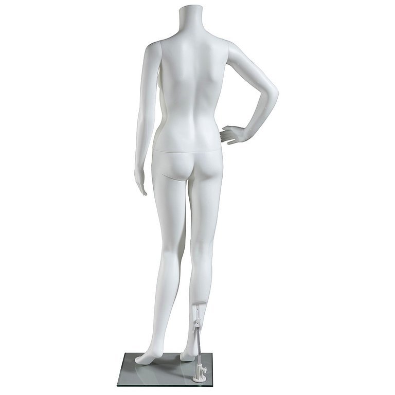 Elegant shop window mannequin with common model dimensions. The professional shop window mannequin is versatile with movable arms, a movable leg and a movable hip to present a variety of clothing styles. The mannequin is equipped with an aluminium calf pin as well as a base plate made of glass to ensure a stable stand. The lightweight product made of recyclable polyethylene (PE) plastic is not only environmentally friendly, but also durable and robust. This product stands out thanks to its excellent value for money. Price per piece.